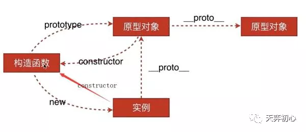 该属性存在于实例和构造函数的原型对象之间,而不是存在于实例与构造函数之间。
