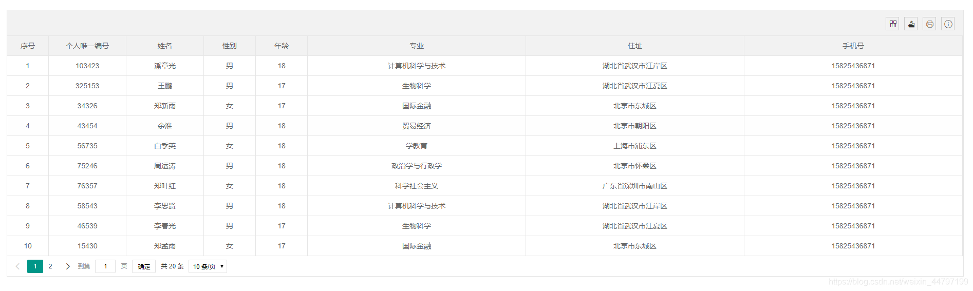 前端在导出表格的时候,由于是导出当前表格的内容,所以只能导出当前数据量的信息,若是要全部导出,可以通过后台导出,或是一次性请求全部数据,然后导出。