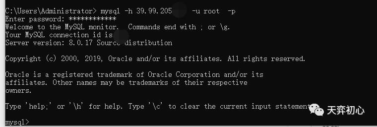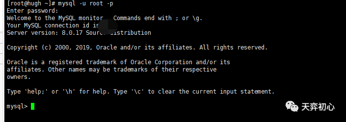 - 输入mysql回车,如果成功,将出现MySQL提示符 >。