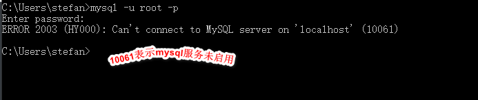 4.重新打开一个cmd命令窗口,输入mysql -uroot -p使用空密码的方式登陆MySQL