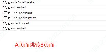 B页面created>B页面beforeMount>A页面beforeDestory>A页面destoryed>B页面mounted