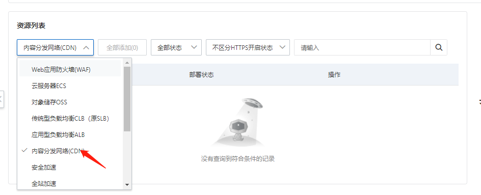 选择后cdn为之前创建好的cdn域名选择部署