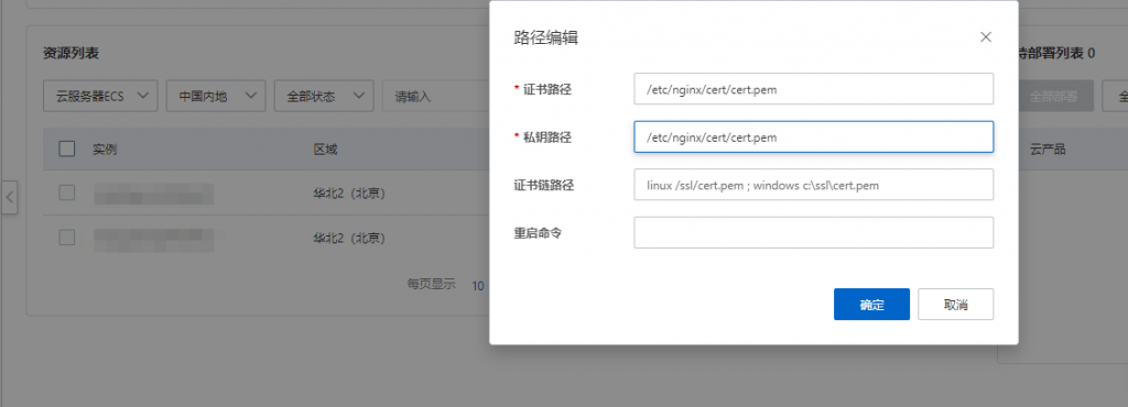 确定后部署验证,验证如果失败请对照cert路径是否填写正确。