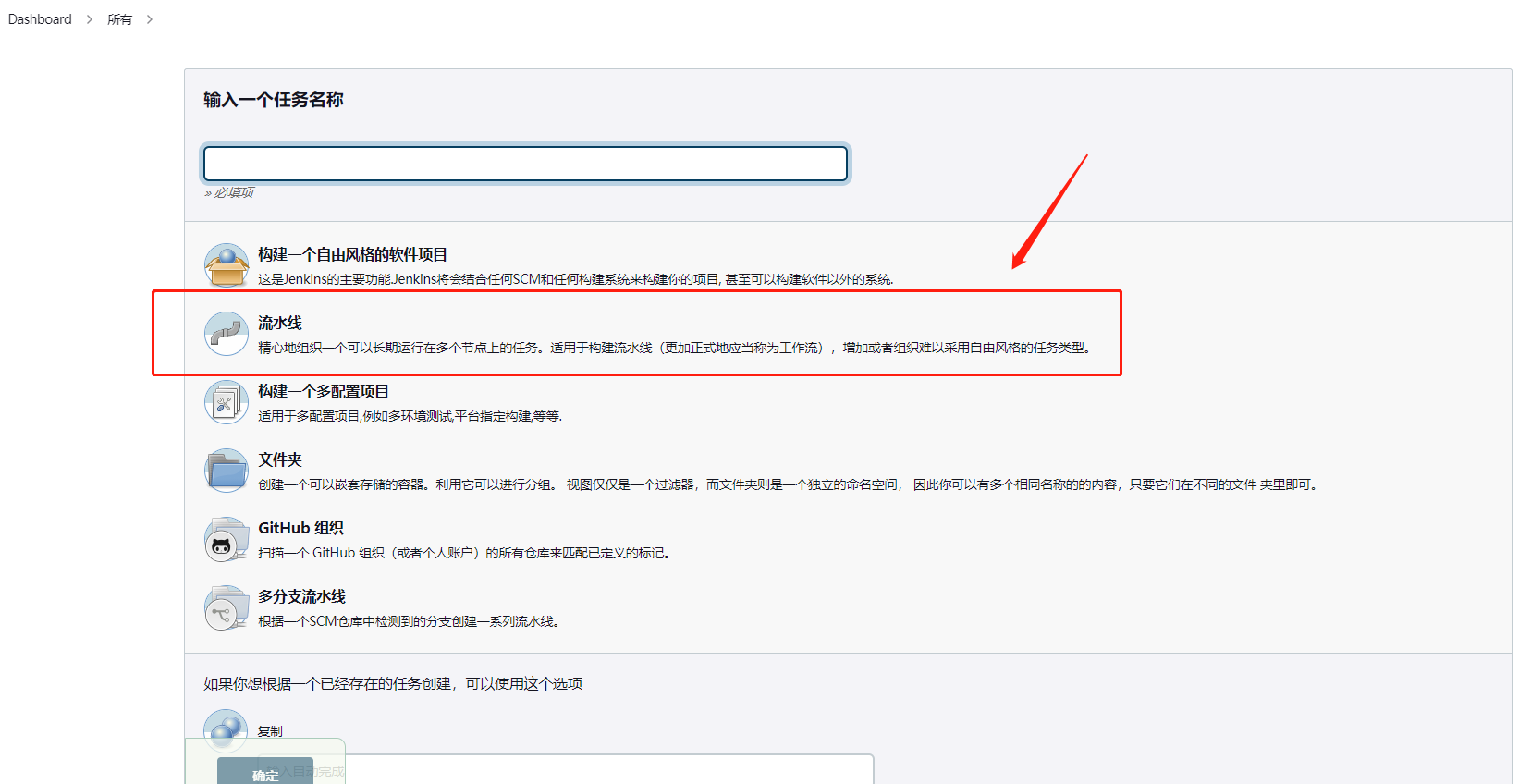 创建工程,选择流水线模式