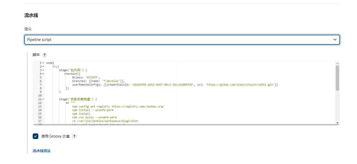 credentialsId为git仓库的用户名,有期效,后期可重新生成。
