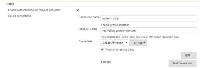 Connection Name随便填;Git Host URL填GitLab的域名地址,例如http://gitlab.yourdomain.com/;Credentials配置;
